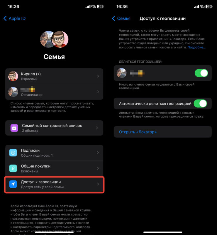 Есть у семейного доступа еще одна фишка, которая точно может принести пользу. В приложении “Локатор” на Айфоне, Айпаде, Маке или в веб-версии iCloud можно отследить устройства членов вашей семьи. Поэтому если кто-то что-то потерял, то возиться с восстановлением доступа к Apple ID не придется. Попросили близкого человека посмотреть, где находится Айфон, и нашли его. Настраивается это так: