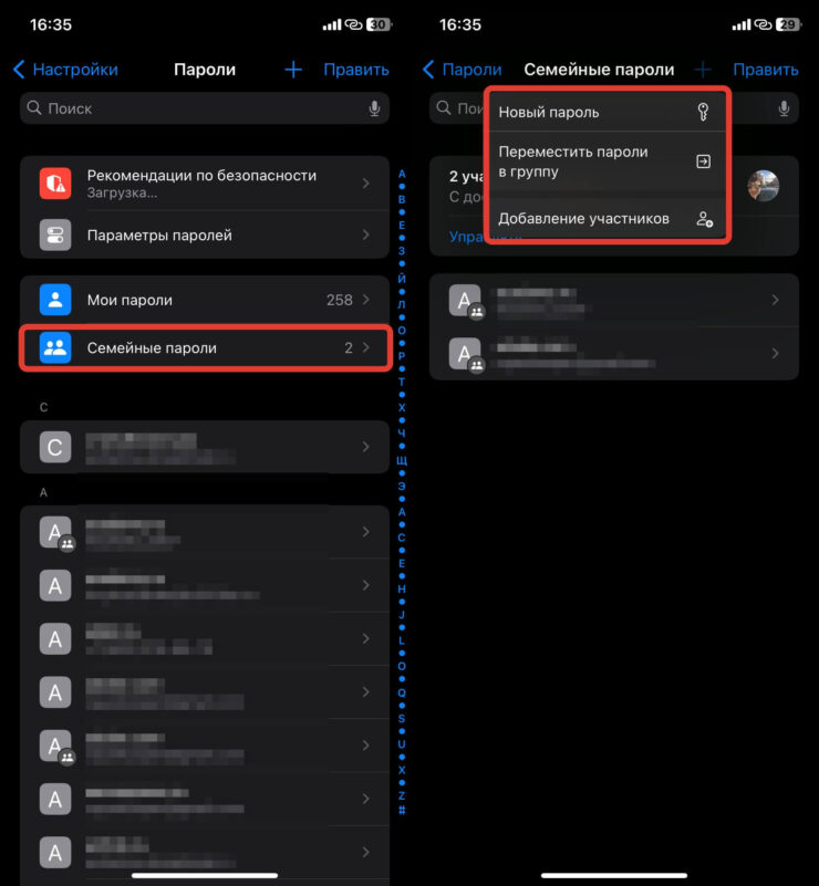 - Выберите пункт “Семейные пароли”;