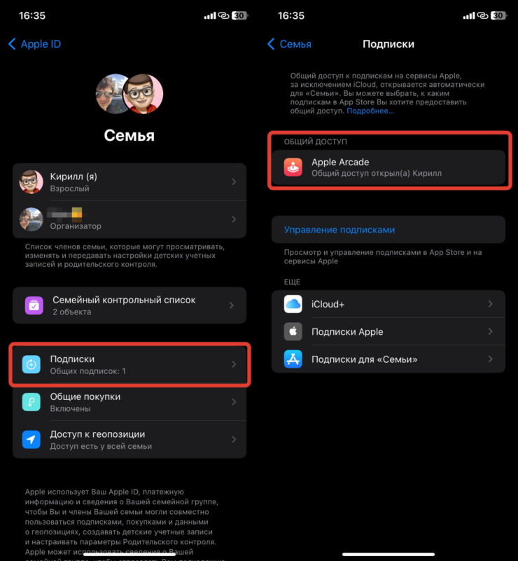 Первое преимущество, которое вы получите, активировав Семейный доступ на Айфоне — это доступ к подпискам. Больше не придется оплачивать отдельную подписку на каждый Apple ID в вашей семье. Например, включив Apple Arcade за 199 рублей в месяц, доступ к нему получат все, кого вы добавите в ваш Apple ID. Экономия более чем значительная. Или, если у каждого члена вашей семьи была индивидуальная подписка на Apple Music за 169 рублей, то теперь можно, доплатив всего 100 рублей, сделать семейную сразу на 6 человек. Уже чувствуете экономию?