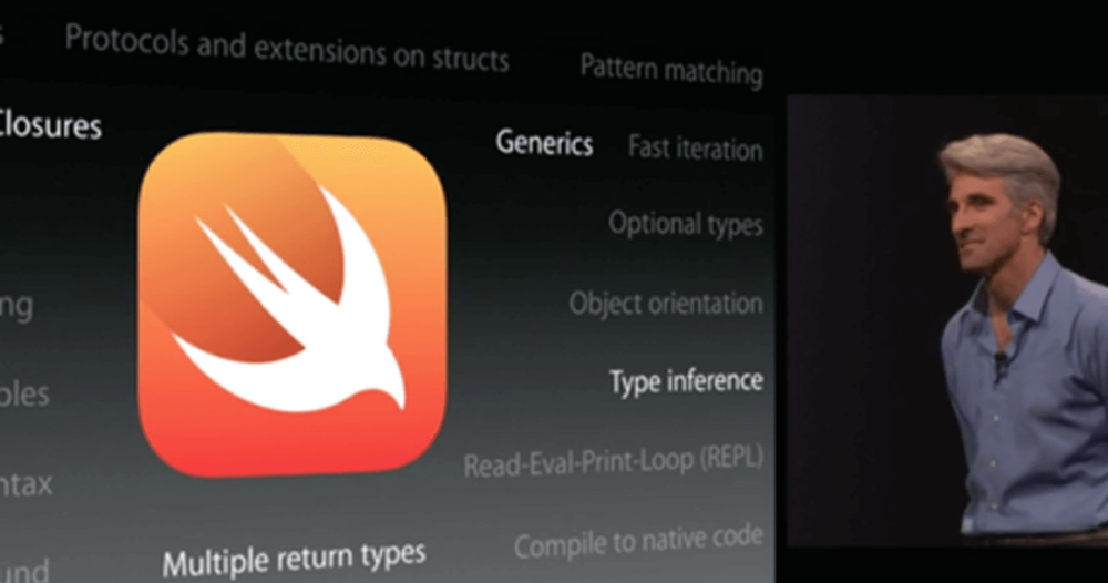 Главное событие пресс-конференции по случаю открытия WWDC 2014 года случилось в самом её конце. Ему уделили совсем немного времени. Крис Латнер, умеющий захватить внимание аудитории и делать с ней все что захочет, был скован и непохож на себя. И тем не менее, WWDC 2014 вошла в историю как “WWDC на которой был представлен Swift”. Новый язык программирования, название которого переводится просто и без затей как “Стриж”, пришел на смену Objective-C.